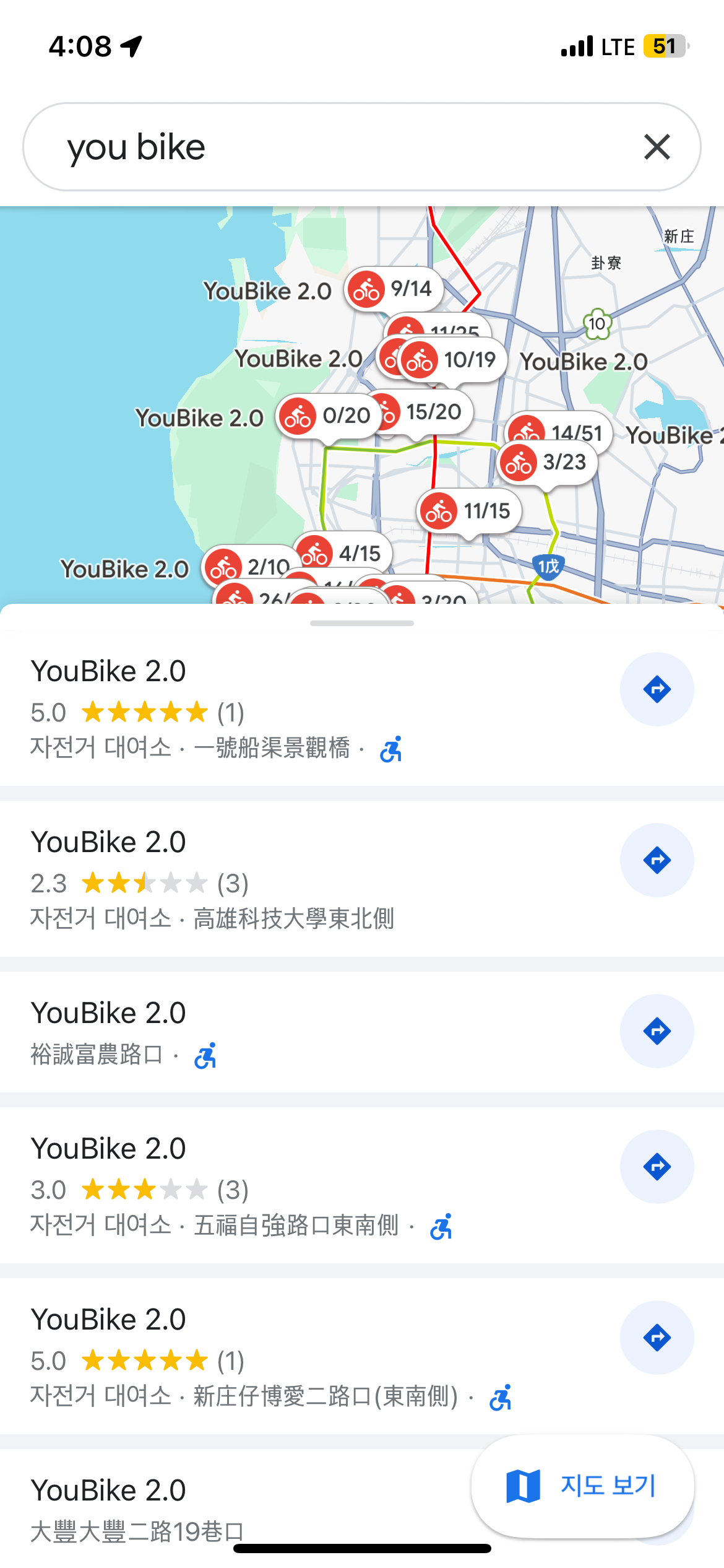 5. 대만 여행: 구글맵으로 유바이크 정류장 찾기