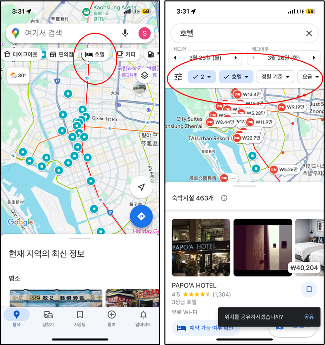 4. 구글맵의 그 밖의 활용: 구글맵으로 호텔 찾기