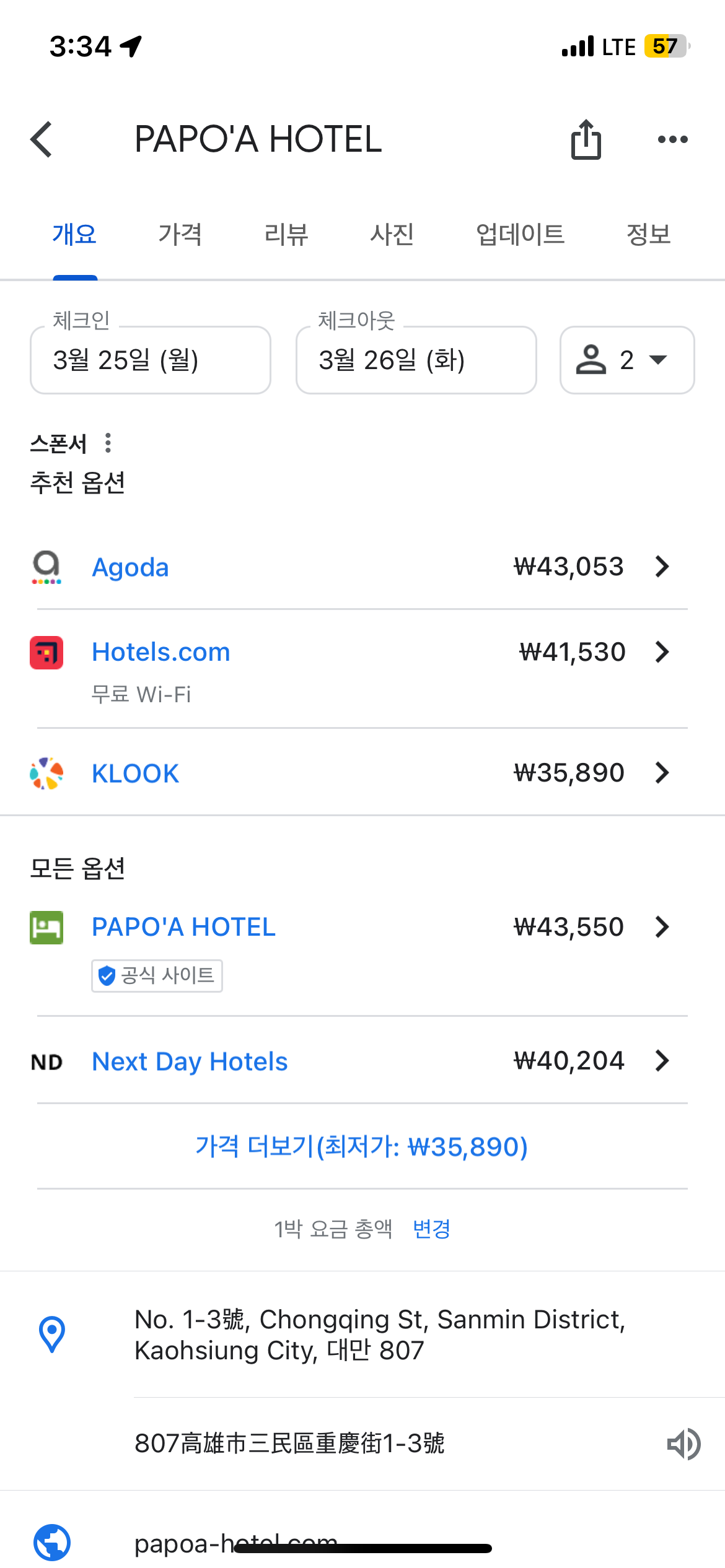 일정을 선택하고, 평점, 가격대, 브랜드, 편의시설 등을 기준으로 호텔을 검색할 수 있고, 리뷰도 같이 볼 수 있어서 편리하더라구요. 그리고 호텔을 선택하면 예약 사이트 별로 가격을 비교할 수 있습니다. 우리나라 사람들이 많이 가는 유명한 관광지의 경우 블로그나 유튜브에 호텔 리뷰가 많지만, 가끔 출장으로 비도심 지역에 갈 때는 호텔 리뷰 찾기가 힘들었어요. 그럴 때 구글 리뷰가 도움이 된 적이 많았습니다. 물론 같은 방식으로 맛집이나 카페 찾기도 가능합니다.