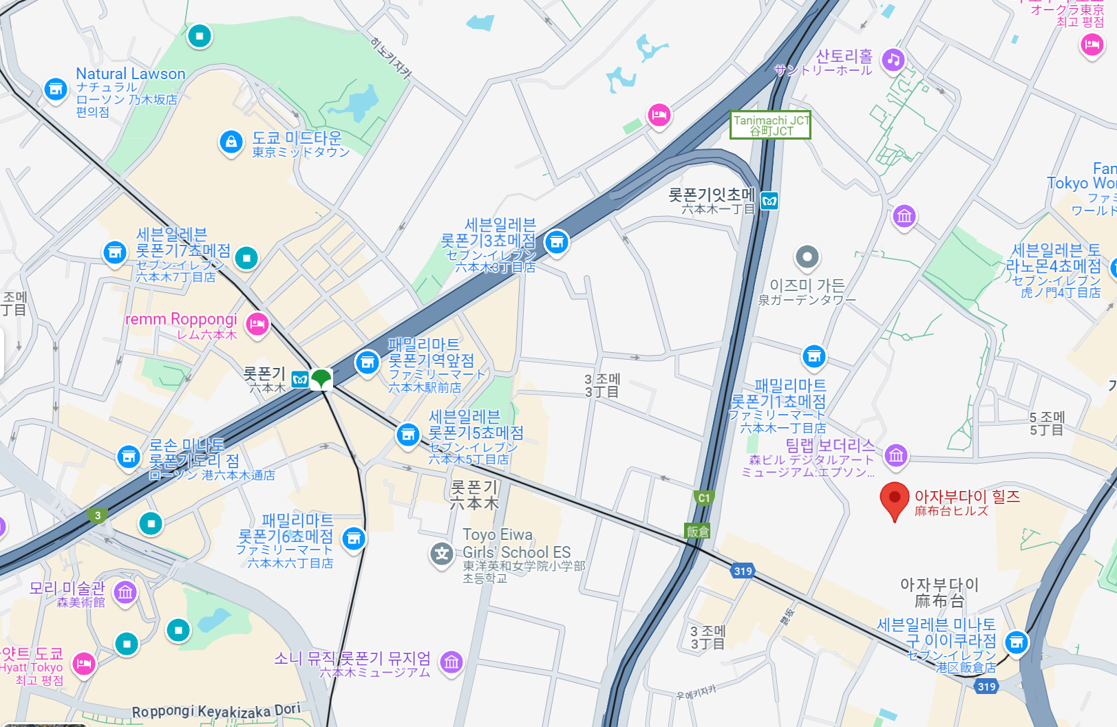 일정 중에 현지인 친구를 만나러 아자부다이라는 곳에 갔는데요, 롯폰기역에서 걸어갈 수 있는 곳입니다.