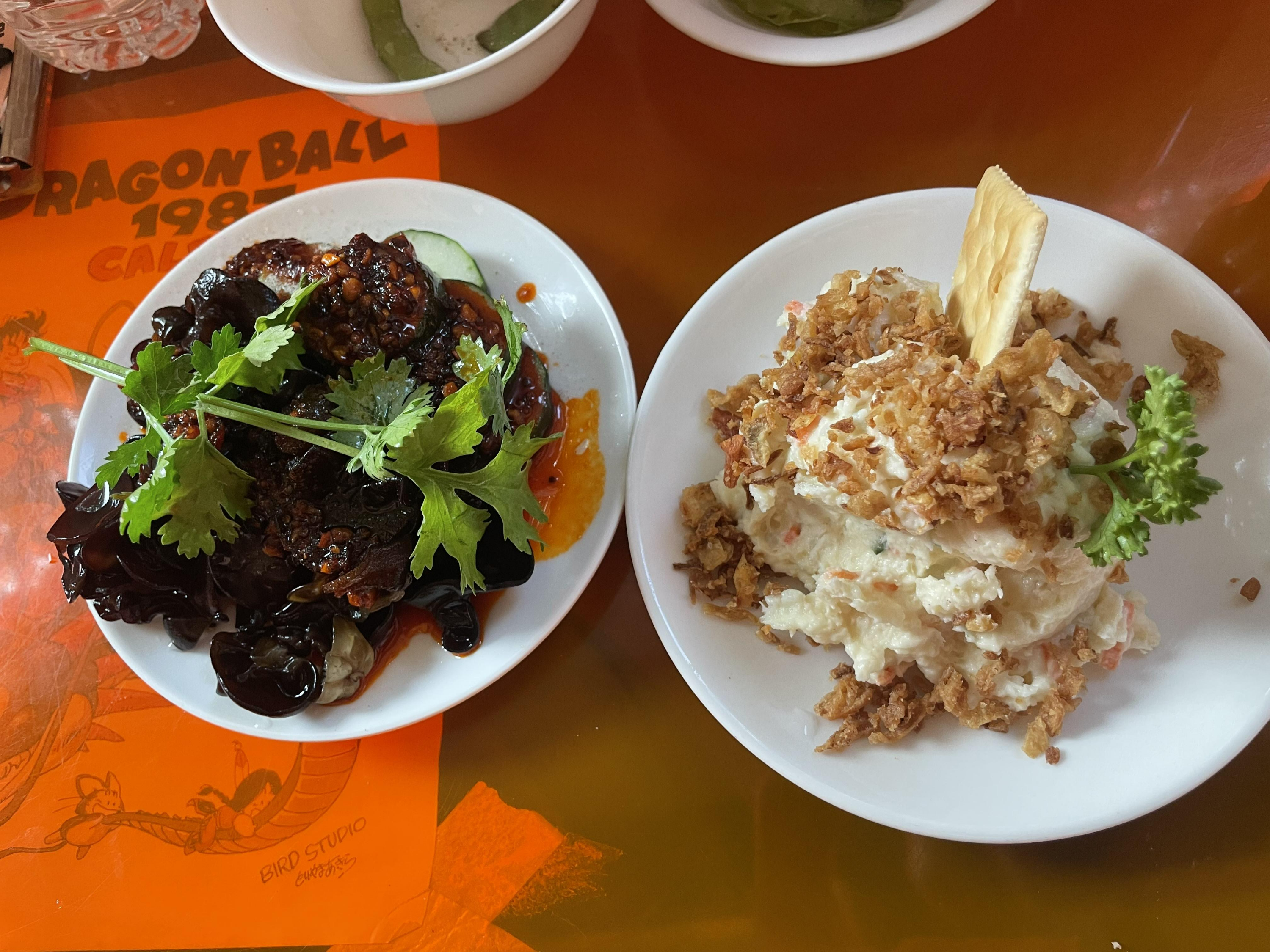 이자카야(미스터 교자 망원) 가서 금요일 늦오후 이른저녁을 즐겼는데요, 치킨 난반, 포테이토샐러드, 교자, 마라맛오이목이버섯무침(이 메뉴 추천. 주문한 음식 중 유일한 신선 야채라서 느끼함 잡는데 필수) 등등! 여러가지 메뉴 맛보기 ㅎㅎ