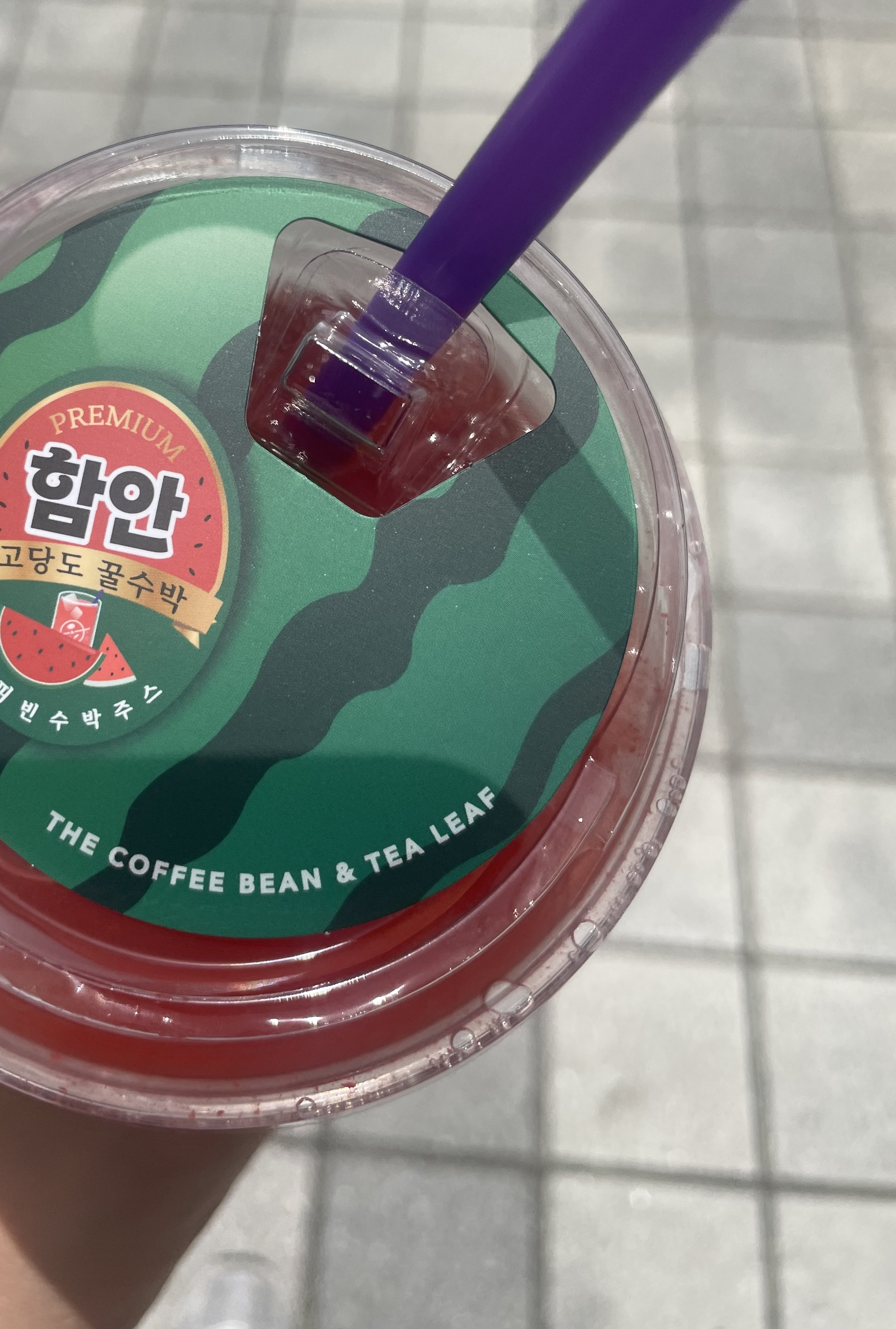여름이니까 여기 저기서 수박주스가 출시됐더라구요? 태국여행 때 먹은 땡모반 생각하며 점심시간에 수박 주스도 한잔.