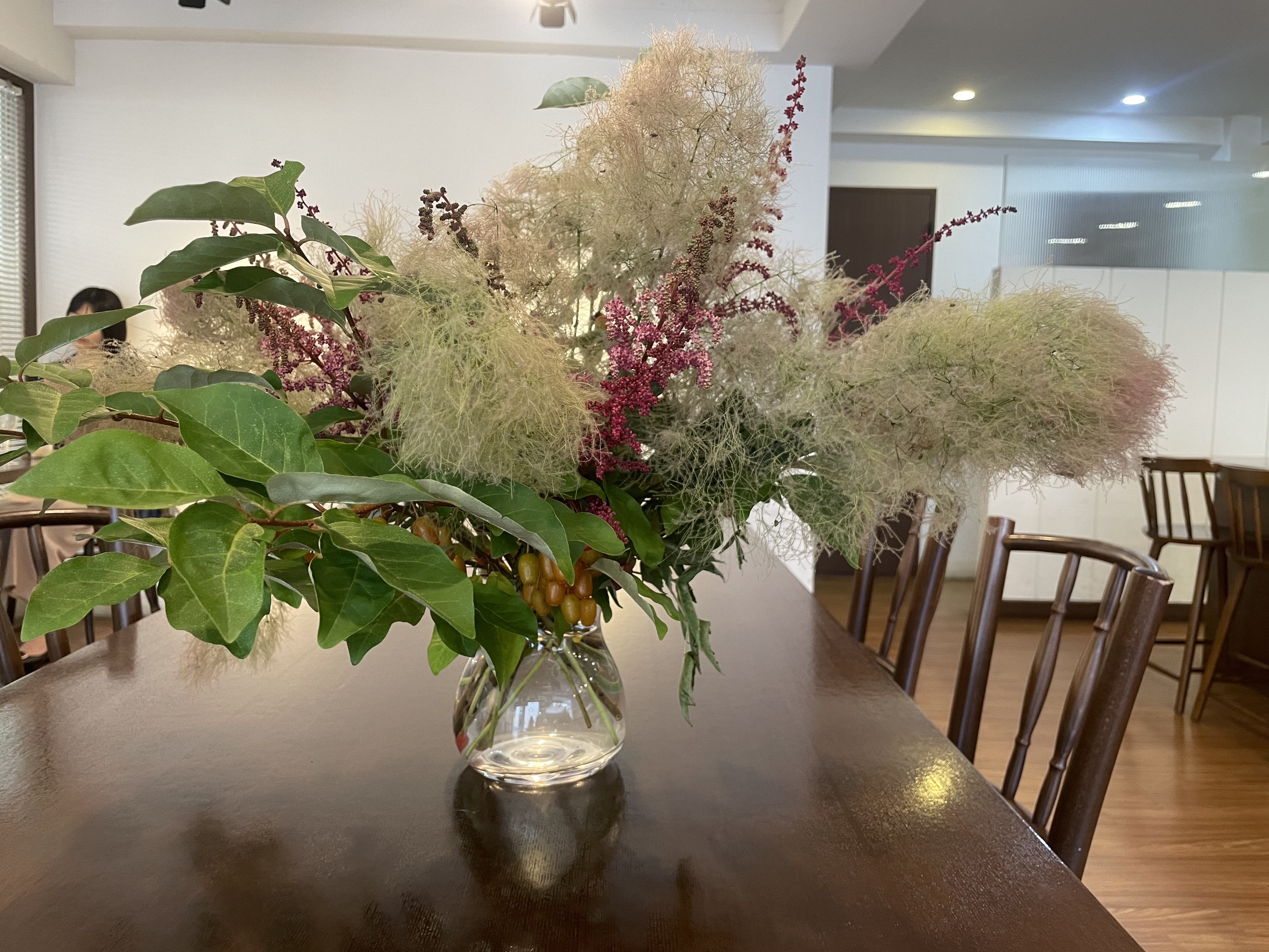 주말에는 좋아하는 카페에 가서 책도 좀 읽었는데 카페 테이블 센터피스가 예쁘더라구요. 독특한 느낌.