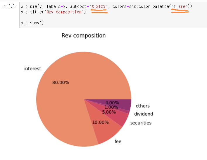 3. 그래프(파이의 면적) 색상 조정: seaborn 사용
