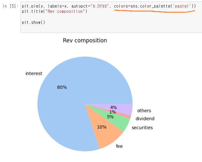 3. 그래프(파이의 면적) 색상 조정: seaborn 사용
